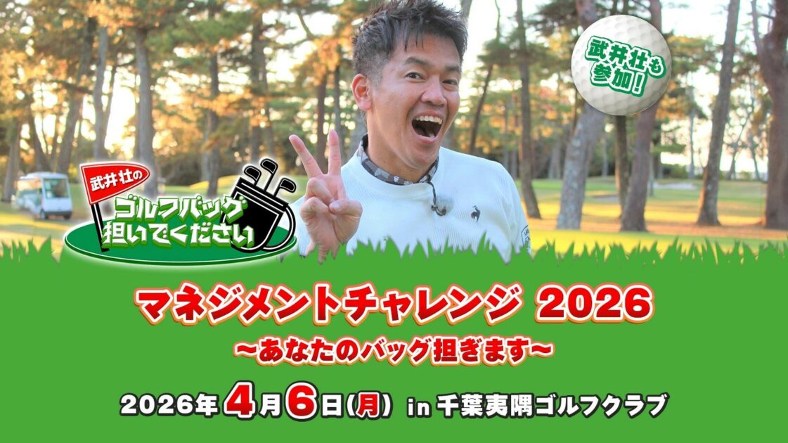 【武井壮のゴルフバッグ担いでください】初のリアルイベント開催決定!トッププロキャディー10名の直接指導でスコアアップ!さらに、武井壮とのラウンド&トークショー、豪華賞品まで!