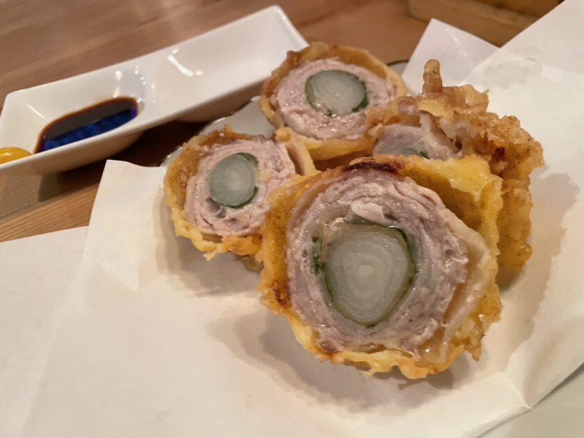 サクサクの衣に、らっきょうのシャキシャキ食感。そして豚の甘みが広がる一品。