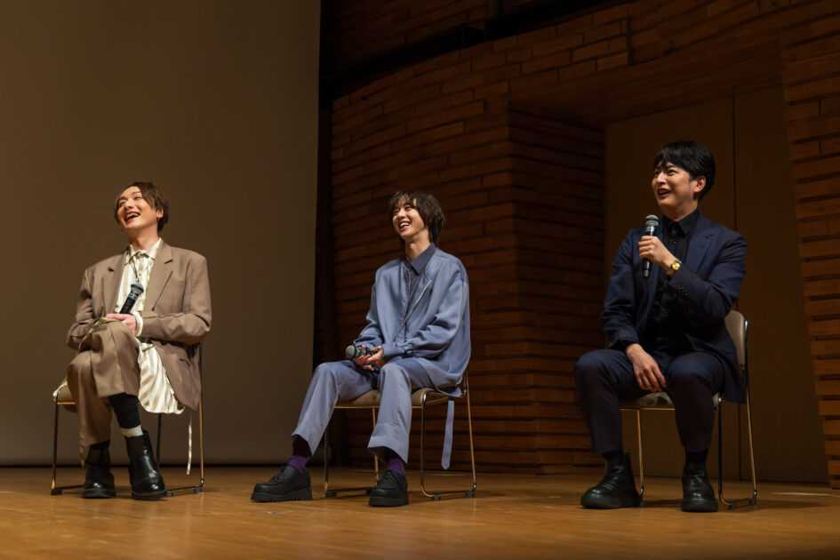 ヤギオ役・染谷俊之とムネチカ役・小西詠斗をはじめ、黒澤羊時役の細貝圭、鮭とば役の世古口凌が登壇し、観客と一緒に、改めてドラマを楽しんだ。