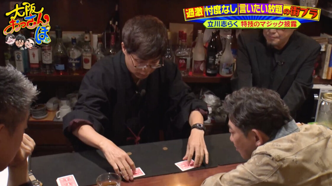 実は志らくも自身のYouTubeチャンネルでマジックを披露するほどの腕前。コインマジックを披露して黒田と橋下を驚かせる。