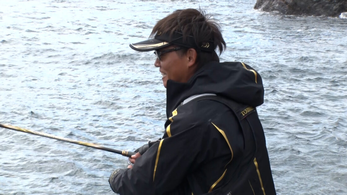 2日目は、場所を変えて鶴見半島の南側・米水津エリアの磯に上がった。「この磯は40㎝、50㎝クラスのオナガグレが釣れる。今日は1発大物狙います」と木村。手を変え品を変えながら探っていくが、中々魚からの反応が返ってこない。