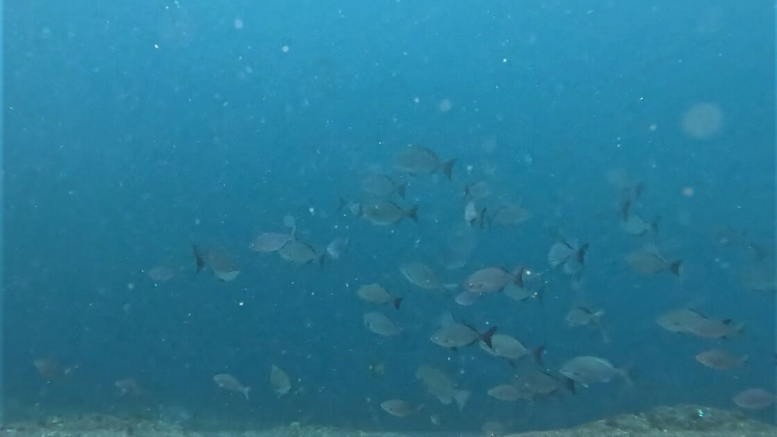 大物への期待を胸に、釣りスタート。序盤、2人は鶴見特有の流れの速い潮流と多くのエサ取りに翻弄される。しかし、こまめに仕掛けを変えたり、オモリを打つなどしてグレにアジャストしていく。
