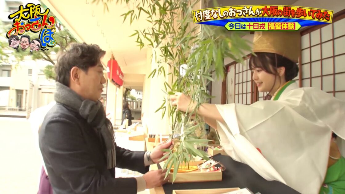 この機会に、「十日戎」で行われる福笹を体験させてもらうことに。笹に付ける縁起物の由来を聞きながら、どれを付けるか迷う黒田と渡辺。しかし橋下は、「(弁護士事務所は)“商売繁盛”と言えないので」とのことで辞退。黒田は「ええように言いやがって」とイチャモンを付ける。