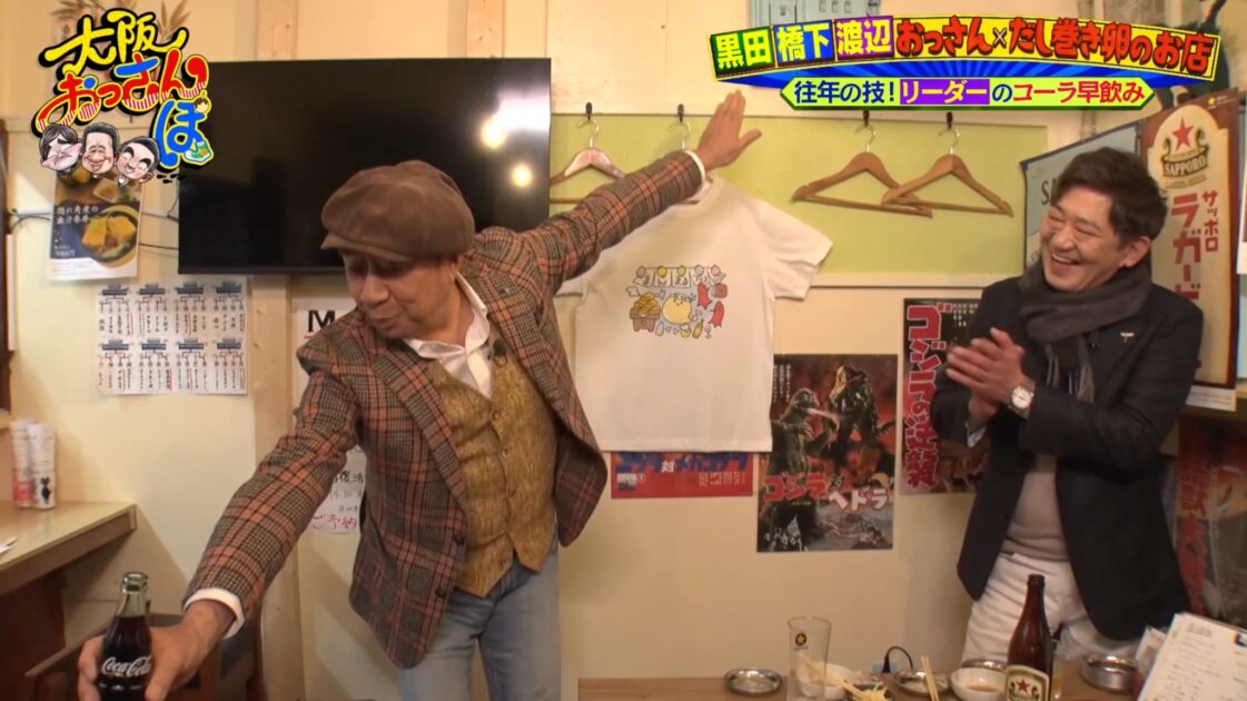 動物園を後にし、新世界へと足を延ばすおっさんたち。道中では、渡辺がかつて大人気番組『オレたちひょうきん族』で披露していた“コーラ早飲み”の秘話が話題に上がり、「実はコツがあるんですよ」と、その舞台裏を語り始める。