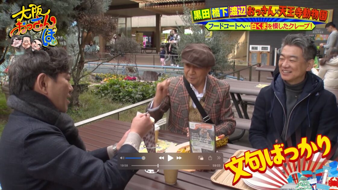 今回の舞台は「天王寺動物園」。ゲストの橋下徹、渡辺正行と共に、いつもとはちょっと趣向を変えて、「動物クイズ」を交えておっさんでも楽しめる“大人の動物園さんぽ”に繰り出す。