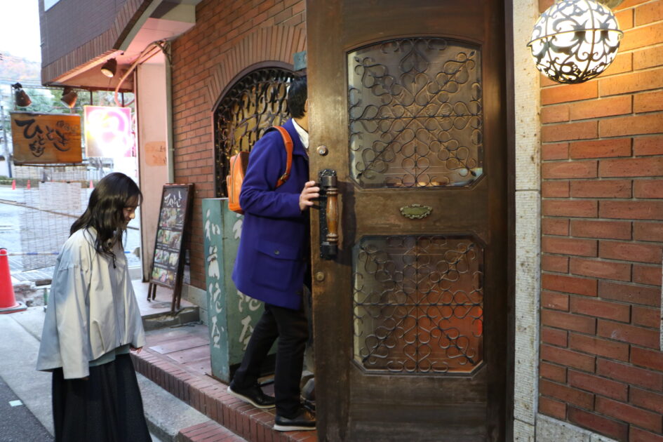 神戸は角打ちが多く、古き良き角打ち文化が残ります。ふたりが入ったのは、珍しいワインの角打ち。しかも店名が【ワインバー失格】。肩肘はらずにワインを楽しんでもらいたいとの思いから名付けられたそうです。