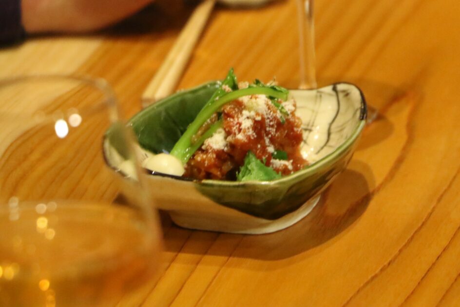 こちらのお店はアテも絶品で、『切干大根のトマト煮込み』は「めちゃくちゃワインに合う!」と三田村大絶賛!レシピを聞いて、こっそりメモします。『天然ぶりのわら燻製』では、口に入れた瞬間に表情が一変!おいしさをかみしめた後、ご主人に「よっ天才!」と掛け声も!