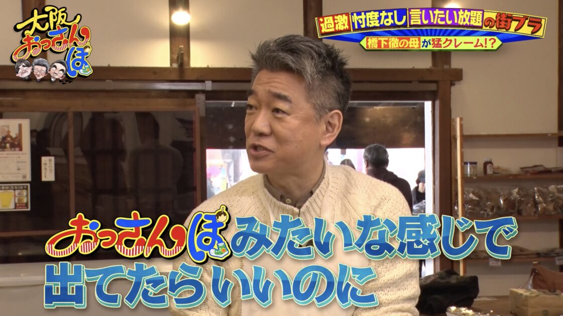一方、橋下の母親は顕在で、コメンテーターとして出演する橋下の番組をチェックしてはダメ出ししてくるそう。そんな母親も『大阪おっさんぽ』に出演しているときの橋下のことは安心して見ていられるようで、黒田は大笑い!