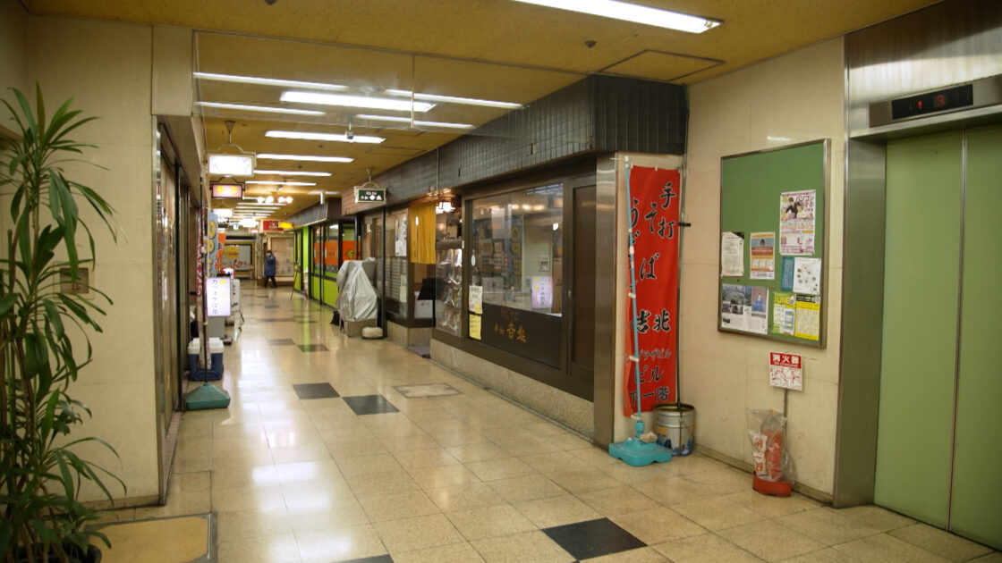 阪急茨木市駅を出てすぐにある、「ソシオ茨木」。飲食店が並ぶ地下街に向かうエスカレーターは、なんと老朽化により運転停止中。階段を使って地下街へと潜入すると、ほとんどの店がシャッターを下ろしたままの状況です。