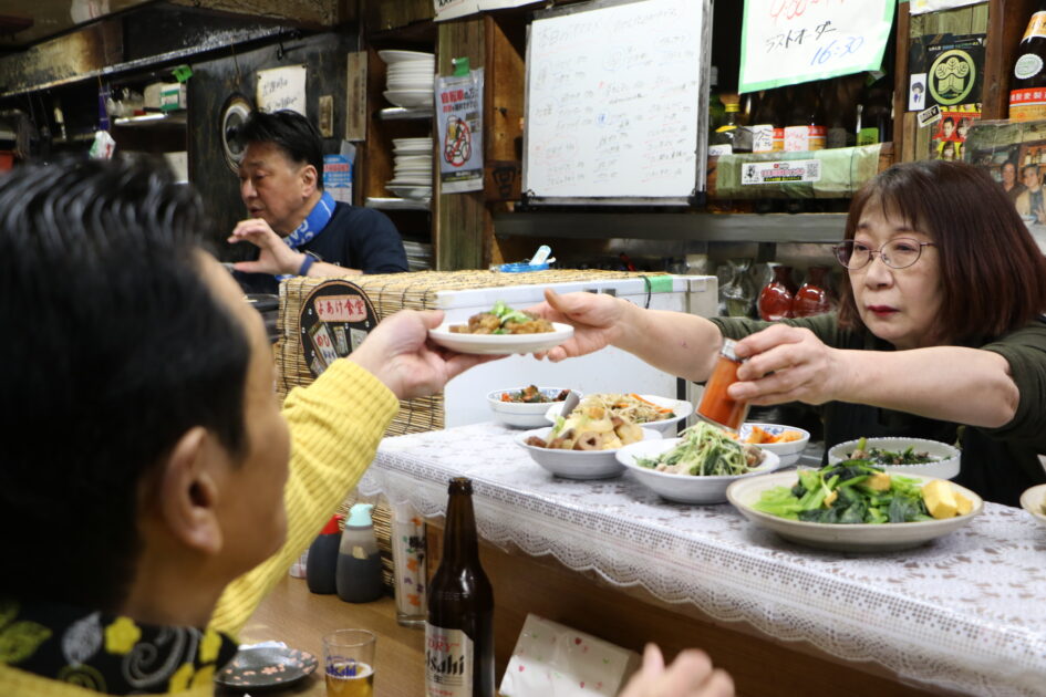 創業80年の【鶴橋よあけ食堂】は、酒に合う家庭料理が人気のお店です。まずは久しぶりの再会にビールで乾杯!メニューがたくさんある中で、目に留まった『宮城さん』を注文。常連さんが考えたメニューだそうで、どんな料理なのでしょうか?