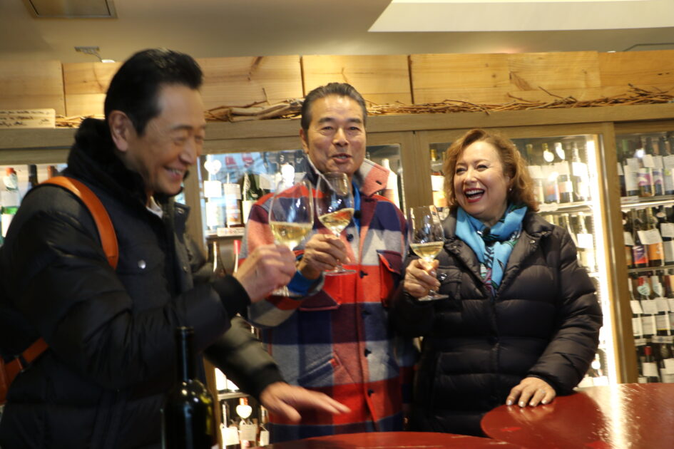 お次は【ワイン食堂 エノテカ バッコ】へ。ご近所のマダムたちの昼飲みでも人気のお店です。オレンジワイン『ルカツィテリ クヴェヴリ』やシチリアの赤ワイン『ネッダ ネロ・ダーヴォラ シチリア BIO』をいただきます。ワインに合わせたお料理の数々に三田村は思わず「宝塚がイタリアになった!」