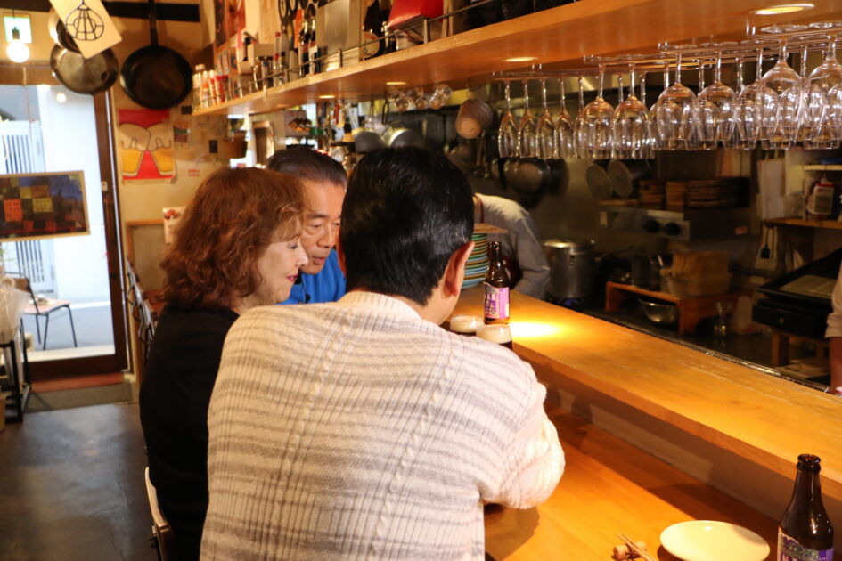 続いてもう1軒、遼河が「美味しい」との噂を聞きつけ、気になっていた立ち呑み店【スタンド モルト】へ。『久保田 百壽(新潟)』で乾杯し、女性店主が手掛けるヘルシーな麹料理をいただきます。三田村のダジャレにあきれるかと思いきや、遼河がまさかのダジャレ返し!