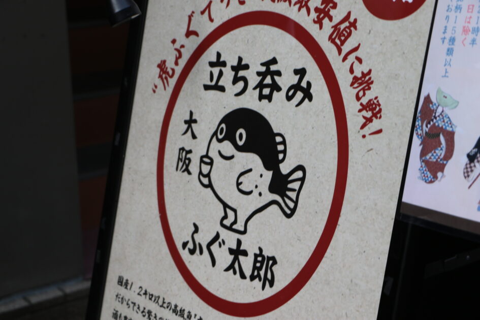 梅田の路地裏を散策していた3人は【立ち呑み 大阪ふぐ太郎】へ。店主が、地元大阪の名物であるふぐをリーズナブルに提供したいと去年9月にオープンさせた立ち呑み店です。