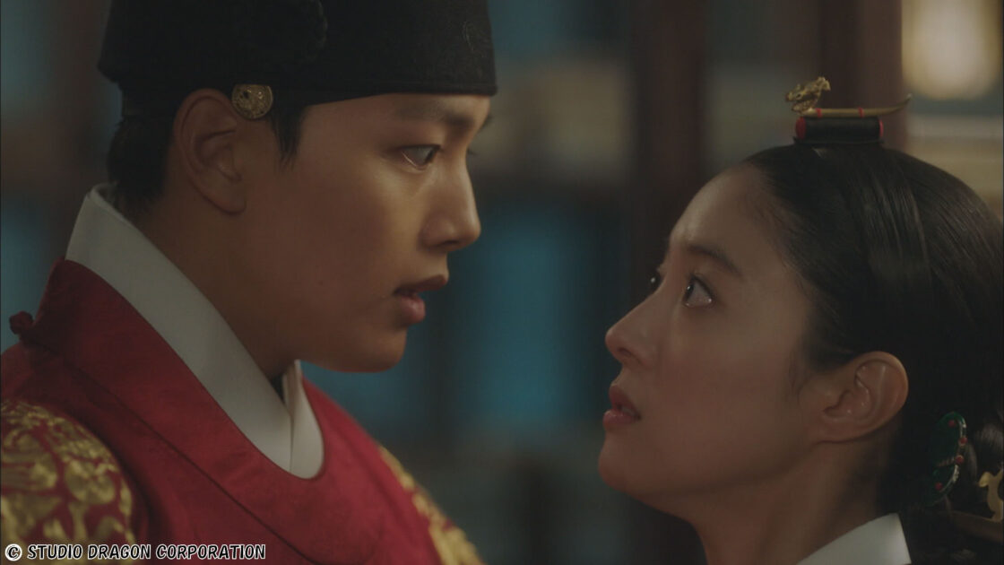 ハソンが王の代わり役だと知るソウン。イ・ギュから本物の王イ・ホンが死んだことを聞き、罪の意識を感じ王宮を出てしまう。イ・ギュは出ていったソウンの命を守るため王妃の座から降ろすよう求めるが、ハソンはソウンが必要だと連れ戻すことを決意。明国の使者が来る前に戻るとイ・ギュに約束し、ムヨンを連れて王宮を出る。ハソンの留守中イ・ギュは、王は王妃に出ていかれて乱心したと噂を流すが、大妃に王の不在を知られ、玉璽と兵符を渡せと迫られる。