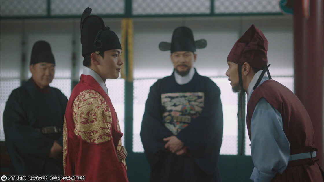 国境を威嚇する後金と明国の狭間で、戦を避ける方法を考えるイ・ギュとハソン。イ・ギュは明国には援軍を送るまでの時間を稼ぎ、その間に後金に密書を送る計画を立てる。そんな中、大同法施行に関し民の意見を聞きにハソンは街へ出る。王の顔を確認しに街へ出たダルレとカプスは、シン・イギョムとすれ違う。イギョムがダルレを襲った男だと知ったカプスは、イギョムに襲いかかり義禁府に連行され、ダルレもシン・チスの使用人に捕まってしまう。ダルレが持っていた王の短刀を見たチスは、ハソンの正体を見極めるため、ギュの留守を狙って大殿を訪ねる。