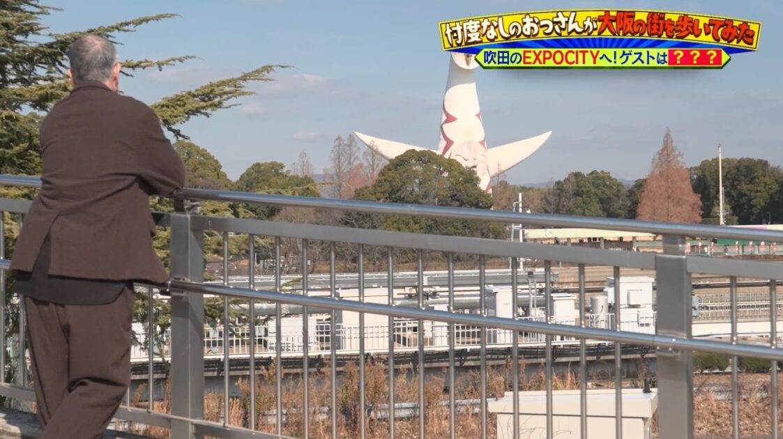 メッセンジャー・黒田と橋下徹が吹田のシンボル・太陽の塔が見える歩道を歩いていると、太陽の塔を見てたそがれている今回のゲスト、名バイプレイヤーの田中要次の姿が……!7歳の頃、1970年開催の大阪万博を訪れたという田中。太陽の塔を見るのは、実に56年ぶりだという。