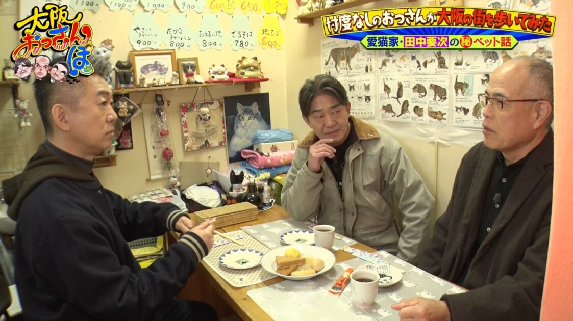 続いて訪れたのは、ねこグッズのお店……と思いきや、「ねこや」という飲食店! 実は田中は大の愛猫家。名物のおでんに舌鼓を打ちながら、愛する猫の話に花を咲かせる。実は現在の奥様と結婚したきっかけも、結婚生活が25年続いているのも、すべて猫のおかげだと話す。