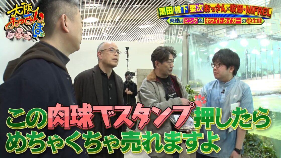 今回は、メッセンジャー・黒田とゲストの田中要次、橋下徹が、吹田の人気スポット『NIFREL』をおっさんぽ。『NIFREL』は水族館・動物園・美術館が融合した施設で、『感性にふれる』をコンセプトに、自然や生きものの驚きや感動に出会えるスポットです。今年1月放送で訪れた『天王寺動物園』で、動物の豆知識に夢中になった黒田。今回も知的好奇心を刺激すべく、おっさんぽに繰り出す。