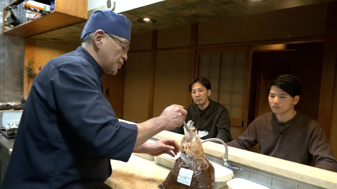 兄弟子2人のサポートを受けながら、新名物料理開発に挑む。