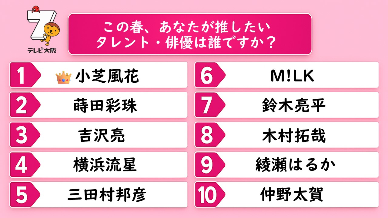 「この春あなたが"推したい"タレント・俳優は?」クラブTVO会員673人が選んだランキング1位は…大阪出身のあの人!