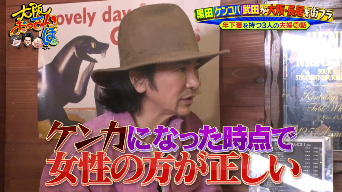 黒田の夫婦ゲンカ話を聞いた武田とケンコバは、「100対0で黒田さんが悪い」と断言。なぜ自分が悪いのか納得できない黒田に、武田は「ケンカになった時点で女性のほうが正しいと判断しないといけないらしいですよ」と“金言”を授ける。