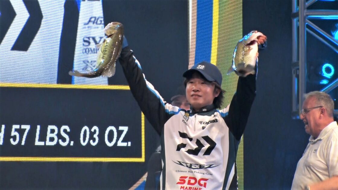 そんな選手たちを尻目に青木は、4ポンドのグッドサイズのバスを釣り上げるなど、好調をキープ。1日目終了時点で7位と好成績を上げた。「フィールドのポテンシャルからしたら、良いサイズが釣れていると思う。優勝が狙える位置にはつけているので明日も頑張りたい」と青木。どこまで順位を上げられるのか?