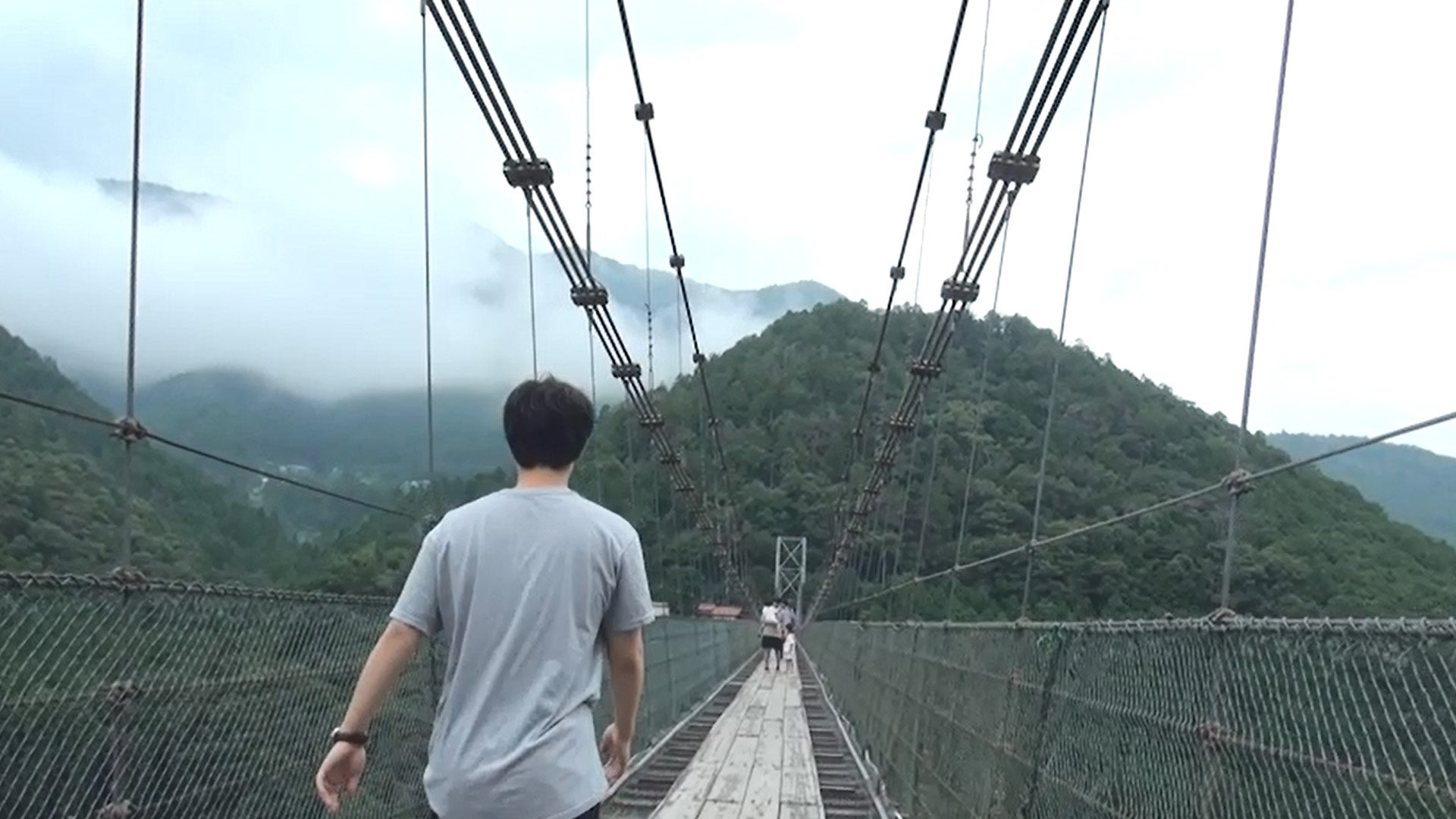 休憩を繰り返しながら、日本の原風景を感じさせる地域を走り抜ける。一方で、車窓からは廃校となった小中学校やかつて紀伊山地を襲った豪雨災害の傷跡も。