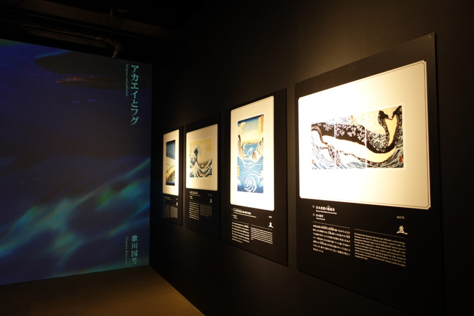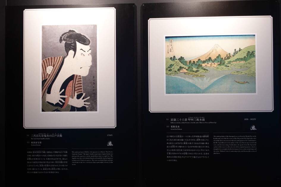 映像コンテンツの元になった浮世絵も紹介されています。映像内に散りばめられた名作を見つけてください。