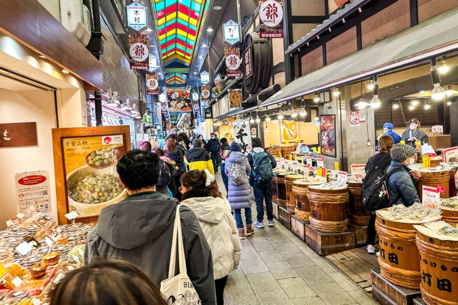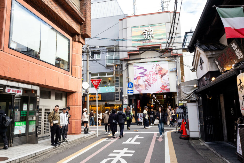 三田村さんの足跡を追いかけて、今回訪れたのが錦市場。最寄りの阪急烏丸駅からはあるいて5分ほど。いまや平日でも多くの観光客でにぎわいます。