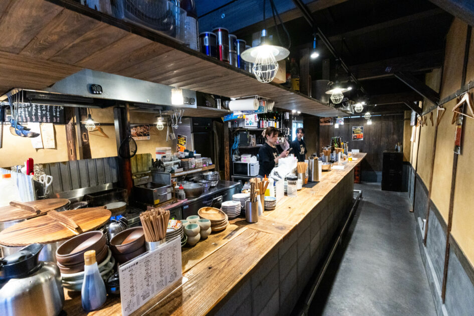 店内は、奥に長く延びるカウンターが印象的。