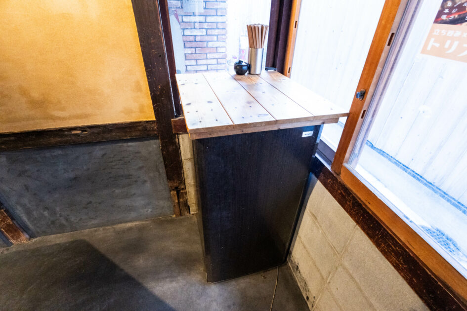スペースを有効に使ったスタンディングスタイルのテーブルも。