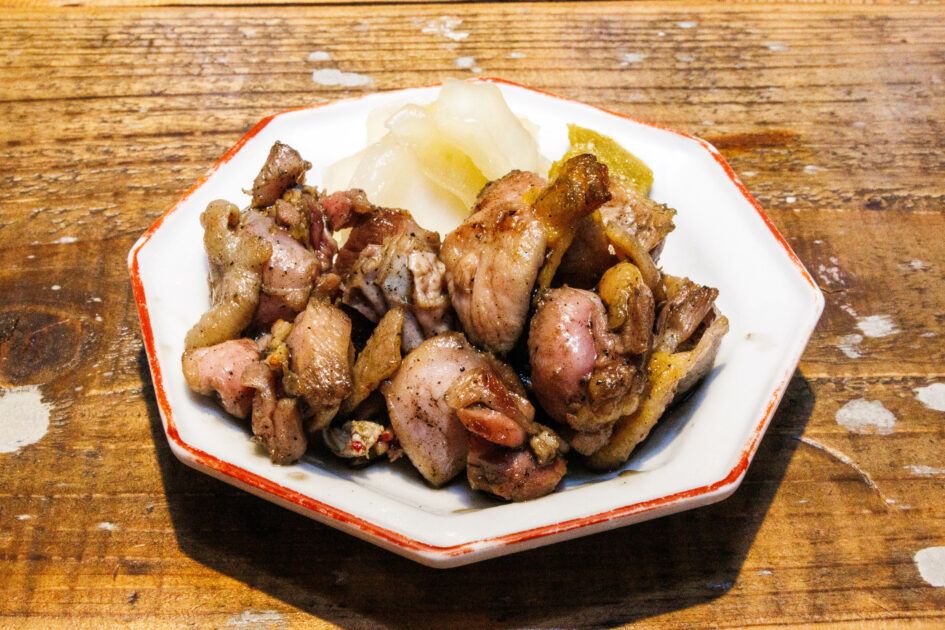 やわらかさと親鶏らしいコリコリ感が共存し、さらに噛むごとに口の中にうま味が広がります。日本酒によく合う味わい。また、柚子こしょうだけでなく、白菜の浅漬けがそえられているのも好印象。
