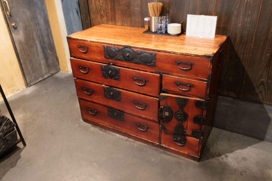 また、古い家具をテーブル替わりに使ったりしています。