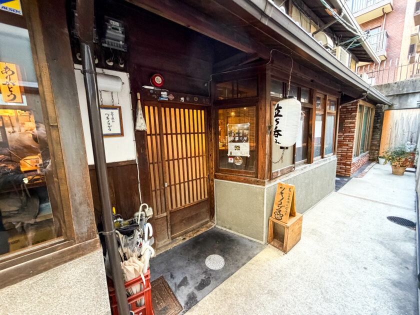 上原アナが「お家の玄関みたいじゃないですか?」という京町家の雰囲気を持ったお店が「立ち呑み ツキノコグマ」。隠れ家的な立地ながら、コスパの高さと個性的な料理でファンのハートをつかみ、連日満員になる人気店です。