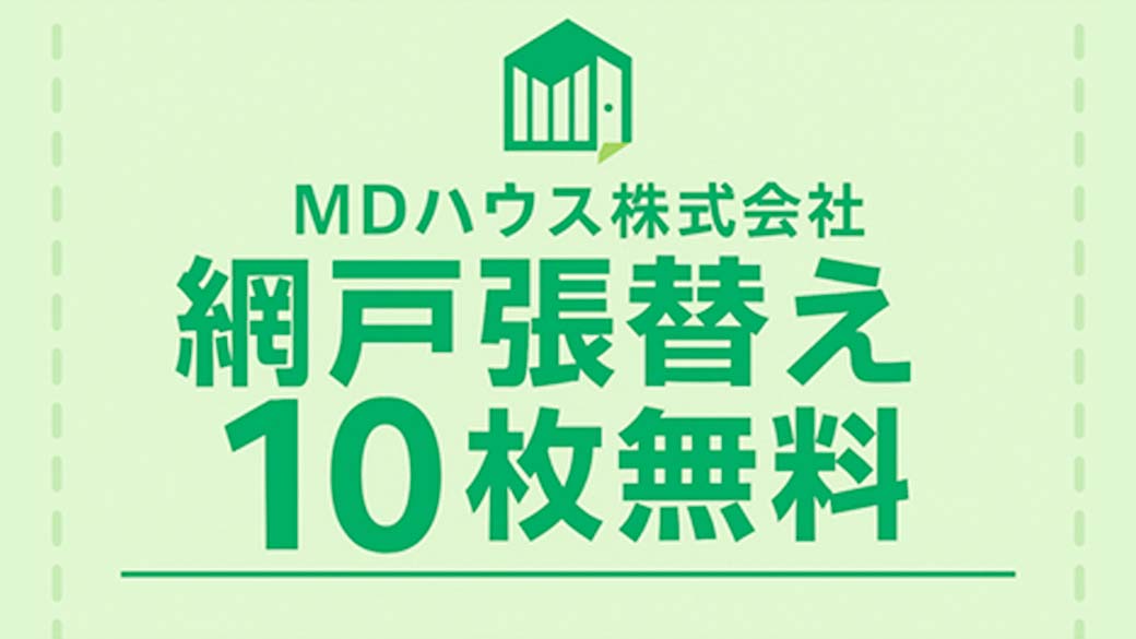 MDハウスより、「網戸張り替え10枚まで無料のサービス券」を5名様にプレゼント!